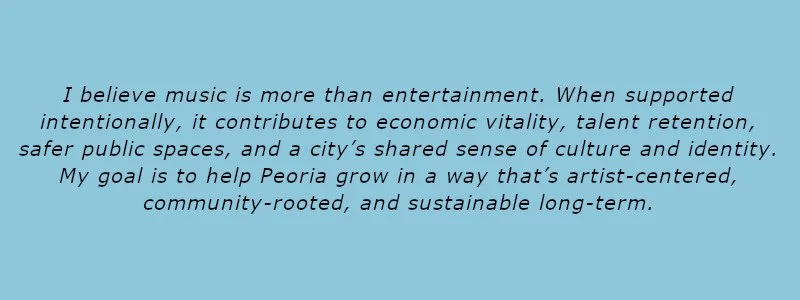 I work at the intersection of music, community, and city-building in Peoria, Illinois.