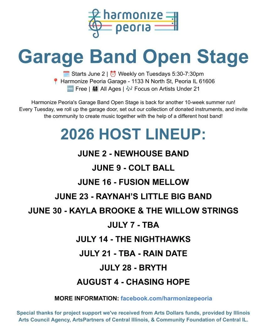 If we overlooked anything or if a schedule changes, send us a quick Facebook message or email press@peoriamusiclive.com so we can adjust it.